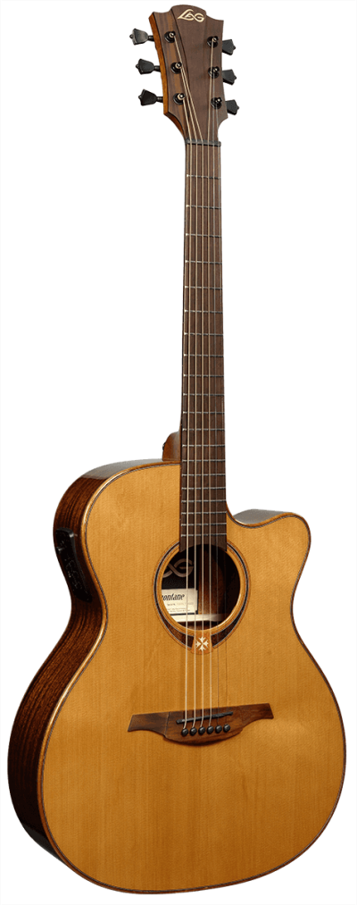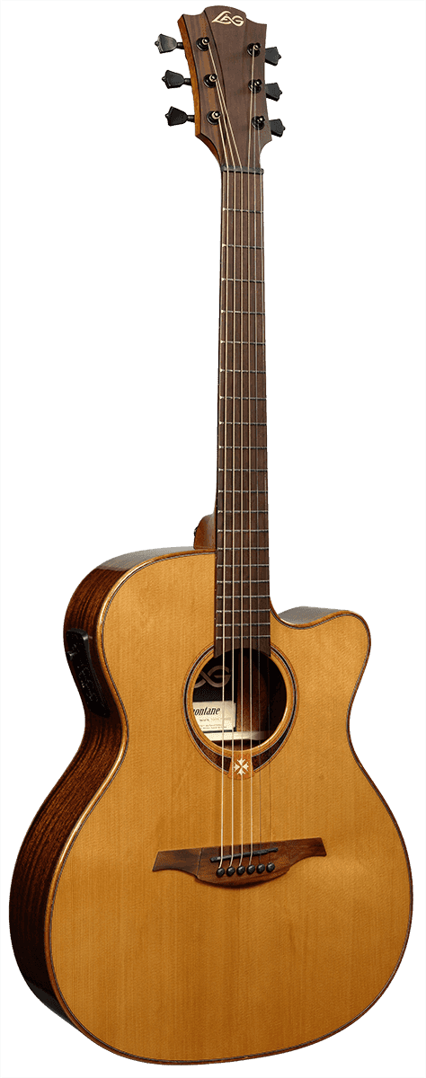 LAG T118ACE Auditorium Cutaway Acoustic-Electric-Acoustic Guitar The T118ACE features an elegant auditorium cutaway shape, allowing for more accessible playability while delivering a rich and balanced sound. With a solid Red Cedar top and Khaya back and sides, all finished with a glossy varnish, the T118ACE is as pleasing to the eye as it is to the ear. Acoustic-Electricnics Incorporating the AstroLAG preamp, the T118ACE offers complete control of Volume, Low, Middle, High, Brilliance, Notch, and Phase, along with a built-in tuner. Whether on stage or in the studio, the T118ACE will perform flawlessly. Premium Features The T118ACE is adorned with black die-cast machine heads that match the black graphite nut, saddle, and bridge pins. The BrankoWood headstock, bridge, and fingerboard add a touch of elegance. The quarter-round body bindings enhance playing comfort and visual appeal, making the T118ACE an alluring choice for guitarists of all levels.