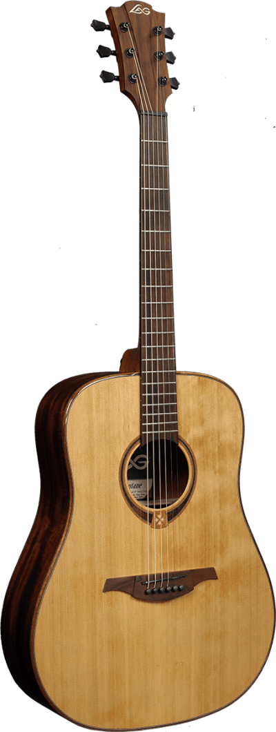 LAG T118D Dreadnought Acoustic Guitar Design and Inspiration The LAG T118D dreadnought acoustic guitar represents the essence of LAG Guitars, drawing inspiration from Southern France. Its elegant design, mirrored in the headstock and bridge, and French aesthetic sensibility have made Tramontane Series the most beloved LAG Guitars ever made. Body and Shape This guitar features a dreadnought body shape known for its rich and resonant sound. Part of the premium T118 series, it's made from carefully selected and graded woods such as solid Red Cedar tops with Khaya back and sides, finished with a glossy varnish. Premium Features The headstock, bridge, and fingerboard are all crafted from BrankoWood, creating a consistent and graceful aesthetic. The unique oval rosette, quarter-round body bindings, and black machine heads stand out as characteristic features, adding to the guitar's beauty and comfort. Comfort and Playability From students to professionals, the Tramontane series caters to everyone, known for its comfort and playability. The quarter-round body binding softens the edge, and the graphite nut & saddle, premium tone wood selections, and high-quality manufacturing reflect the standard synonymous with the LAG Factory.