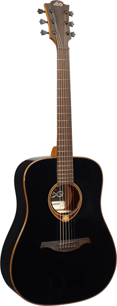 LAG T118D-BLK Dreadnought Acoustic Guitar The LAG T118D-BLK is a dreadnought acoustic guitar that draws its inspiration from the scenic beauty of Southern France. Its high gloss black finish adds an additional layer of sophistication to the design, mirroring the French aesthetic that defines LAG Guitars. Body and Shape Featuring a dreadnought body shape, the T118D-BLK offers a bold and resonant sound. The body is finished in high gloss black, enhancing its visual allure while preserving the premium tone quality. The solid Red Cedar top with Khaya back and sides is a signature of the T118 series. Premium Features Crafted with a headstock, bridge, and fingerboard made from BrankoWood, the T118D-BLK also boasts the iconic oval rosette and comfortable quarter-round body bindings. The ebony-like black machine heads contribute to the guitar's harmonious aesthetics. Quality and Performance With the consistent high-quality manufacturing for which the LAG Factory is known, the Tramontane Series has become a favorite choice among guitarists. The T118D-BLK model continues this tradition, offering a high gloss black finish that adds a touch of class to any musical setting.