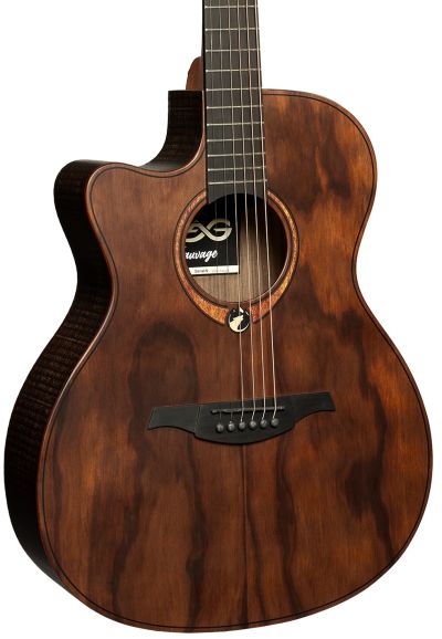 Sauvage Auditorium Left-Handed Cutaway Acoustic-Electric The LAG Sauvage-ACE-L, a left-handed auditorium cutaway Acoustic-Electric acoustic guitar, showcases the finest in craftsmanship, innovation, and commitment to sustainability, a hallmark of LAG Guitars. This left-handed version of the Sauvage-ACE features a rounded back of rough sawn eucalyptus and a solid pale BrankoWood top and comes with a study gig bag.