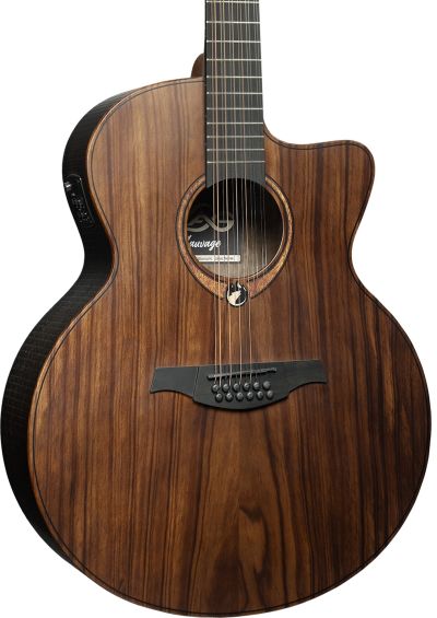 The LAG Sauvage-J12CE is a jumbo 12-string Acoustic-Electric acoustic guitar, an exquisite addition to the Sauvage series by LAG Guitars. It's a true musical masterpiece, reflecting the same commitment to quality, innovation, and sustainability that characterizes the entire series. Eco-Friendly Craftsmanship: Designed with FSC Certified BrankoWood and an innovative eco-friendly varnishing process, the Sauvage-J12CE symbolizes a seamless blend of beauty and environmental consciousness. The tropicalization process of the BrankoWood ensures a stable wood that's resistant to humidity and temperature changes, reflecting the splendor of precious aged woods without the ecological impact. Jumbo 12-String Shape: The jumbo 12-string shape of the Sauvage-J12CE delivers a rich and powerful sound, providing both volume and depth that 12-string guitars are known for. This particular shape makes it a versatile instrument, ideal for strumming, fingerpicking, or solo performances. Acoustic-Electric Acoustic Features: Equipped with the StageLAG preamp system, the Sauvage-J12CE provides exceptional sound control for both stage and studio use. Its controls for Volume, Low, Middle, High, Phase, Notch, and a tuner give musicians the freedom to tailor the sound to their preferences. The rounded back and BrankoWood components further enrich the full-bodied tone. Aesthetic Design: Featuring the iconic LAG headstock design mirrored on the bridge, rough sawn Smoke Eucalyptus back and sides with a rounded back, and black machine heads, the Sauvage-J12CE continues the visual elegance of the Sauvage series. Its aesthetic uniqueness sets it apart from other 12-string guitars. Sauvage Series: The LAG Sauvage-J12CE carries on the theme of the Sauvage series, reflecting a harmonious blend of style, sustainability, and musical brilliance. This jumbo 12-string Acoustic-Electric acoustic guitar represents the innovation and quality that are synonymous with LAG Guitars. Like other guitars in the series, it comes with a sturdy gig bag, ensuring protection and convenience for your musical journeys.