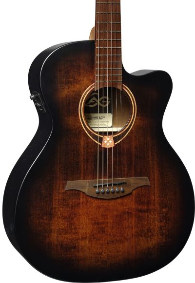 The Lag T70ACE-B&B Auditorium Cutaway Electro-Acoustic Guitar The Lag T70ACE-B&B is a remarkable model from the T70 Series, boasting an auditorium cutaway electro-acoustic body shape. The unique black and brown satin finish (B&B) sets it apart in appearance and resonates with Lag's commitment to design, quality, and sound. Body and Design Featuring an auditorium cutaway electro-acoustic body, the Lag T70ACE-B&B provides an elegant balance of tone and accessibility. The black and brown satin finish (B&B) complements the guitar's aesthetics and reflects Lag Guitars' distinctive approach to visual artistry. Sound and Electronics The T70ACE-B&B comes equipped with the DirectLag preamp system, offering Volume, low middle and high eq controls, phase reverse, and a tuner. This allows for versatile sound control and authentic reproduction. The combination of a solid spruce top and Swietenia Mahogany back and sides ensures a rich and resonant sound. Tramontane Influence Incorporating features from Lag's famed Tramontane series, this model includes the iconic mirrored headstock and bridge shapes, crafted from BrankoWood. The black tuning pegs and visually pleasing body bindings contribute to the unique and comfortable feel of the guitar.