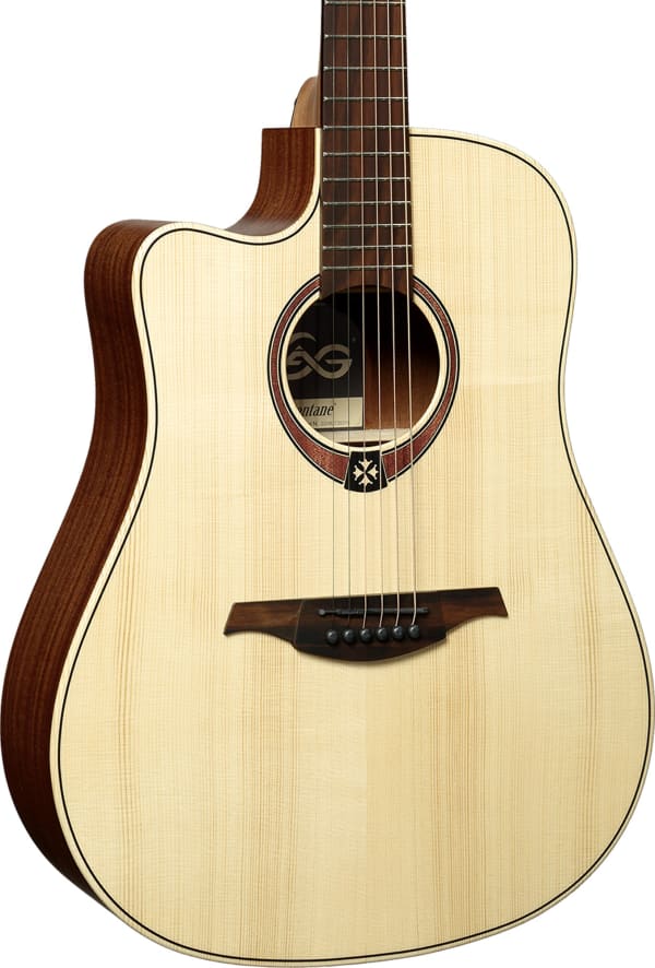 The Lag TL70DCE-NAT, is an elegant left-handed guitar in the T70 Series, offers a refined dreadnought cutaway electro-acoustic body. With its Natural satin finish and impressive craftsmanship, this guitar caters to left-handed players without compromising on quality and tone.